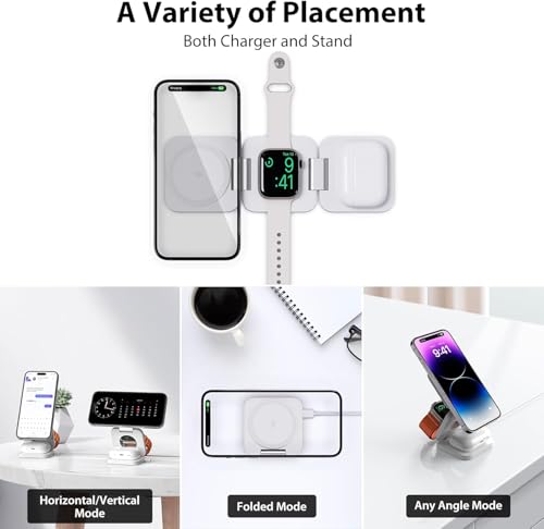 【Portable Foldable Travel Charger】This wireless 3-in-1 charger is only half the size of an iPhone and less than an inch thick.Featuring a foldable, lightweight design, this charging station is ideal for home, office, travel or trip. It’s convenient for working remotely or on traveling.