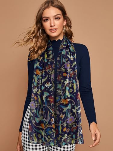 GERINLY Scarfs for Women Lightweight Floral Birds Print Cotton Scarves and Wraps for Winter Shawl