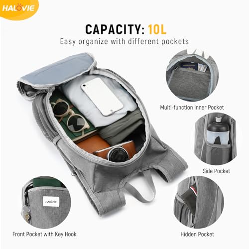 HALOVIE Small Hiking Backpack 10L Packable Lightweight Daypack Foldable Travel Back Pack for Women Men(Lightgray)