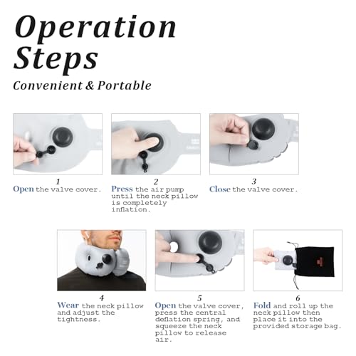 PORTABLE DESIGN: Compact inflatable neck pillow that can be easily deflated and stored when not in use, perfect for travel and commuting