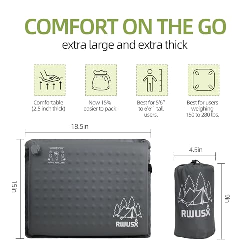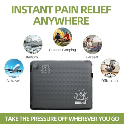 Lightweight, Portable & Compact:RWUSX Inflatable Seat Cushion weighs nothing and folds down to the size of a soda can. It slips into backpack or even a large pocket. An absolute lifesaver for Commute, mountain climbing, or airplanes. Packs down to 9×4.5 inches and weighs under 11 oz