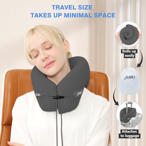 jiaao Upgraded Middle Memory Foam Travel Neck Pillow for Airplane- 360° Ergonomic Head and Neck Support for Flight, Car, Train, Bus – Soft Travel Pillow for Side & Back Sleepers with Travel Pouch