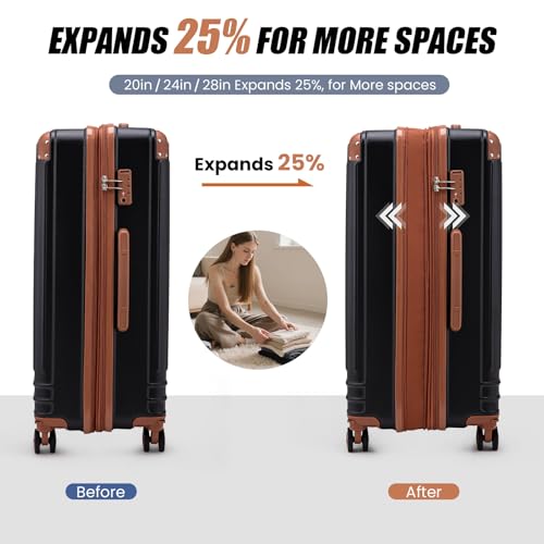 Expandable Capacity: 20in 24in and 28in luggages can expand for 25% more capacity. The 20in carry-on luggage is approved by airlines. It fits most airline overhead compartments and may also be carried onto the airplane.