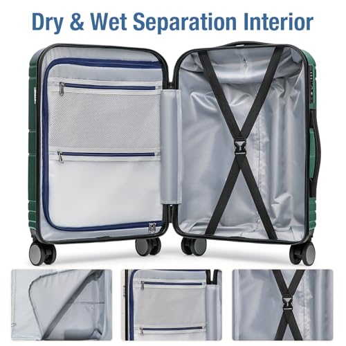 KYME Carry On Luggage 22x14x9 Airline Approved with TSA Lock Hard Shell Carry On Suitcase Lightweight Suitcases with Wheels Small Luggage for Men Women,Carry-On 20 Inch,Green