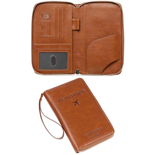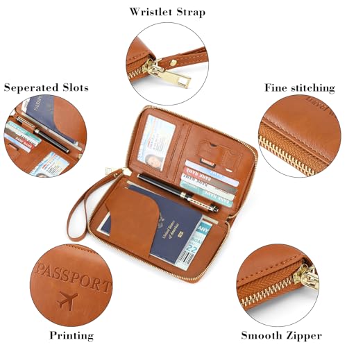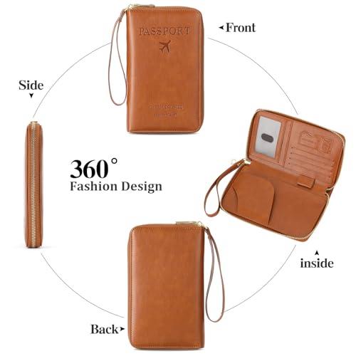 Leather RFID Blocking Passport Holder Travel Wallet, Passport Cover/Travel Wallet for Women/Men with