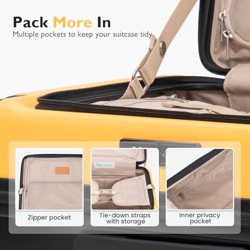 LEVEL8 Top Opening Carry on Luggage Hardshell, Large Suitcases with Wheels Airline Approved, Expandable Luggage with Spinner Wheel for Men Women, 20 Inch, Yellow