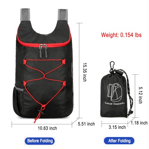 【Lightweight Foldable Backpack】This waterproof climbing backpack may also be stored in a small storage pocket, with unfolded size of approximately 10.63(L) * 5.51(W) * 15.35(H) inch, After being folded about the size of a fist. It could easily fit into more than a few bags or clothing pockets as a backup bag,weighing only 85g, making it easy to carry.