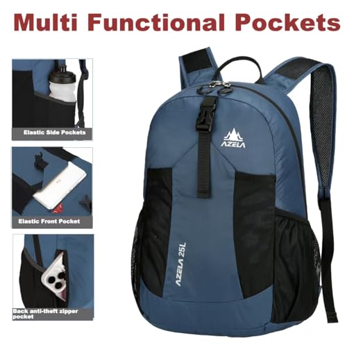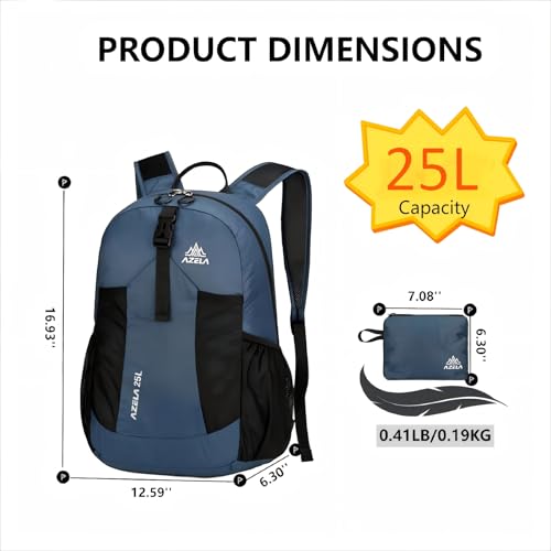 Lightweight Packable Backpack 25L Small Lightweight Backpack for Travel Hiking Daypack Foldable Daypack for Women Men Blue