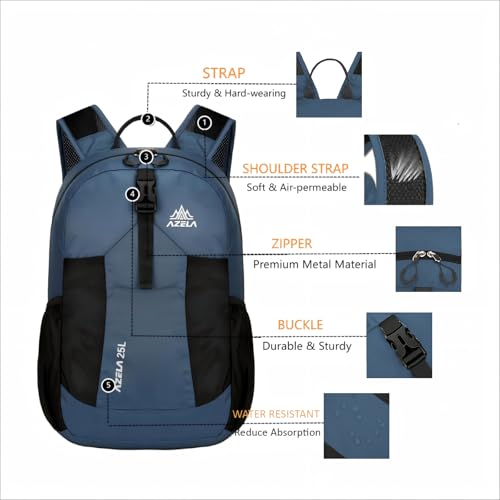 Spacious 25L Daily Workhorse: The lightweight hiking backpack fits gym clothes, groceries, or 2 days shuttle gear! Organized with a main compartment + front pocket+ 2 side pockets. Breathable mesh straps prevent sweat buildup all over long wear.