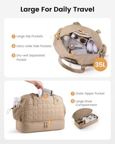 LOVEVOOK Large Travel Duffle Bag,Weekender Bags For Women with Shoe Compartment,Puffer Carry On Bags For Airplanes,Hospital Bag for Labor and Delivery,Overnight Bag With Toiletry Bag,Gym Tote Bag