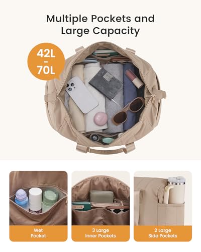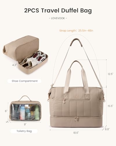 LOVEVOOK Travel Duffle Bag,Puffer Weekender Bags For Women with Shoe Compartment,42L Carry On Duffel Bags For Airplanes,Hospital Bag for Labor and Delivery,Overnight Bsg With Toiletry,2Pcs Set