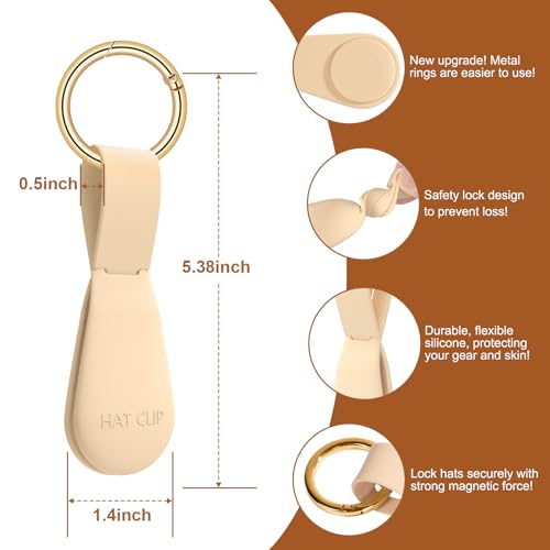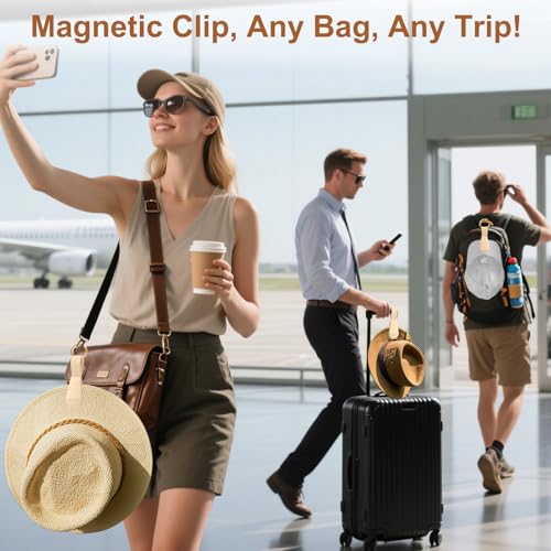 GREAT GIFT IDEA, ESSENTIAL FOR TRAVEL — Fikoksol light khaki magnetic hat clips are an ideal gift for anyone, women, men,elderly, children. Suit for travelers of all ages, the hat clip is a should-have traveler accessory. The hat clip for shuttle on bag not only reduces the trouble of carrying hats on the go back and forth, but also reduces the trouble of losing hats or other small items like gloves, scarves, and tickets. Safe by utility patents U.S. Pat. No. 10,413,047.