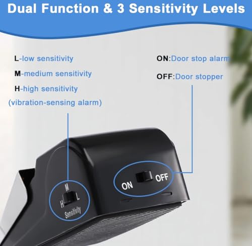 3 Adjustable Sensitive Levels – Low /Medium /High, with an adjustable sensitivity switch on the side. Set high level when you are sleeping and you will know subtle differences of your door and get a peace of mind.
