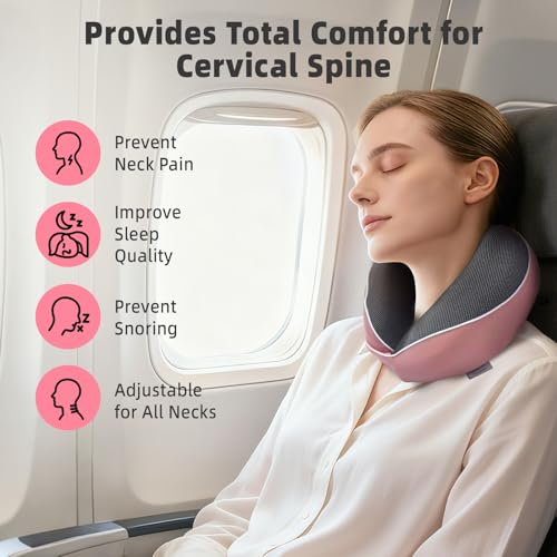 ERGONOMIC NECK SUPPORTt – Designed with 360° wrap-around improve, this pink neck pillow fits the natural curve of your neck and provides stability all through flights, car rides, or train journeys.