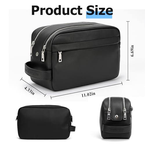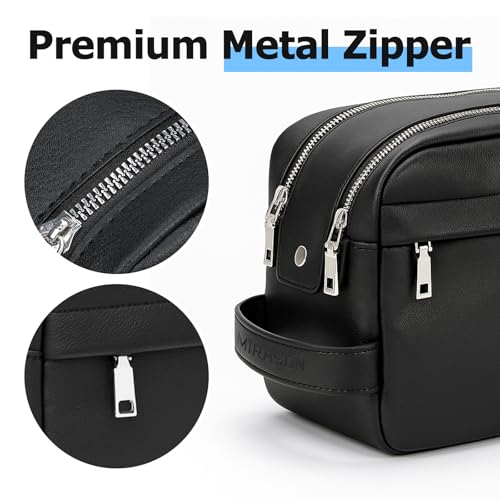 MIRASON Travel Toiletry Bag for Men Leather Travel Bag for Toiletries, Dopp Kit Water-resistant Shower Bag for Shaving Bathroom Organizer Gifts for Men, Black