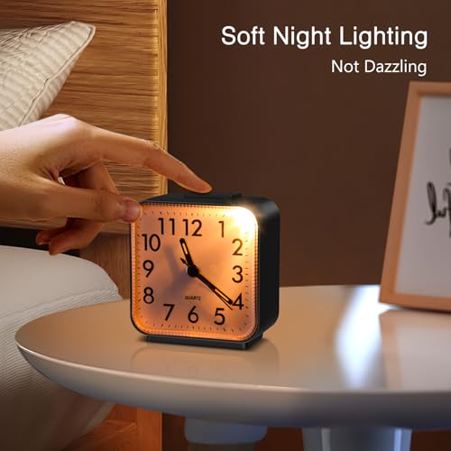 Soft Night Light: Press the snooze/light button on the top of the analog travel alarm clock, you can easily read the time in the dark. The soft light is not dazzling and will automatically turn off to save power. It is also a good decoration for home, bedside, desk, office, etc.
