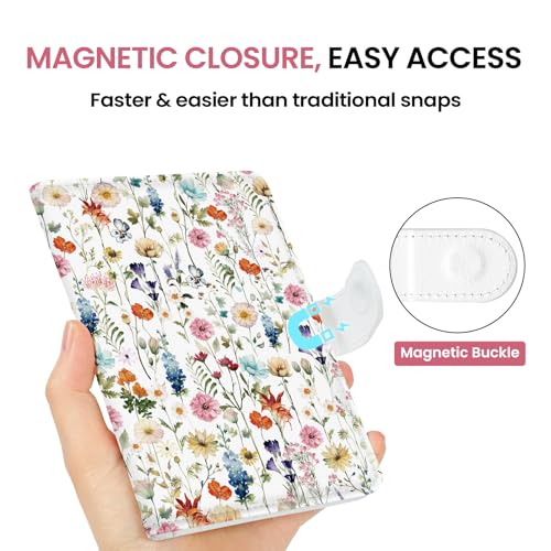 Passport Holder for Travel Essentials, RFID Blocking Leather Cover Wallet with Magnetic Closure, Aesthetic & Cute Passport Book Case for Women and Men – Wildflower