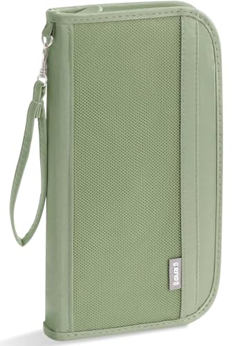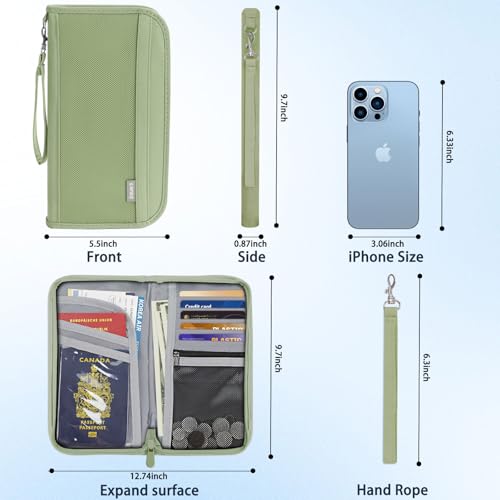 Passport Holder for Travel, Rfid Blocking Passport Wallet Travel Documents Organizer, Waterproof Family Passport Holder with Wrist Strap for Men & Women, Green