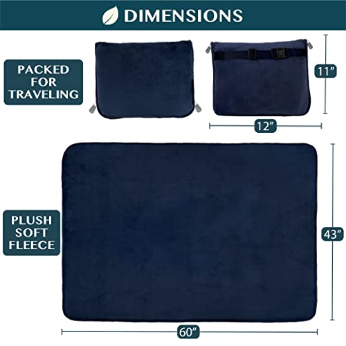 PAVILIA Travel Blanket Pillow, Soft Airplane Blanket 2-IN-1 Combo Set, Plane Blanket Compact Packable, Flight Essentials Car Pillow, Travelers Gifts Accessories Luggage Backpack Strap, 60×43 Navy Blue