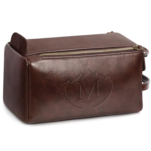 Personalized Toiletry Bag for Men,Initial Mens Toiletry Bags for Traveling,Men Travel Toiletries Bag,PU Leather Shaving Bag for Toiletries Accessories kit (M, Dark Brown)