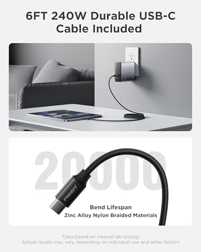 [What You Get] PISEN 160W USB C charger*1, 6FT 240W USB-C to USB-C cable*1, User Manual*1