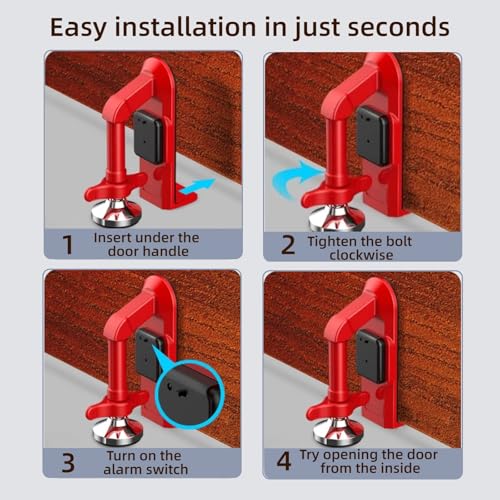 Tool-Free Installation: Portable door stopper is Install or cast off in seconds without drilling, screws, or damage to doors or floors. Simply position portable door alarm under the door below the deal with, tighten the screw, and protected your space. The quick-release mechanism allows instant removal in emergencies
