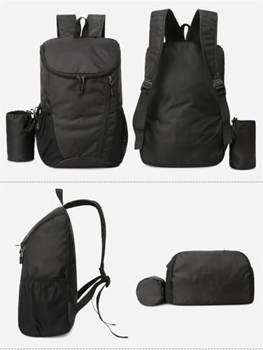 Portable Foldable Backpack Folding Mountaineering Bag, Ultralight Outdoor Cycling Rucksack, Travel Hiking Knapsack (Black)