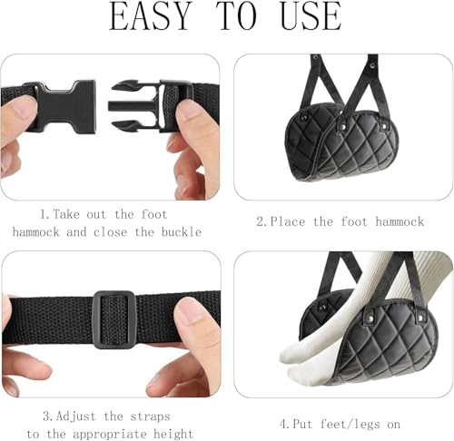 Effortless to Use : The airplane foot hammock features adjustable strap sizes, making it suitable for a variety of sitting positions and people of different heights. The travel footrest for airplane journeys is extremely simple to use. Just wrap the footrest around the front seat tray, adjust the length of the straps, and place your feet or legs on the airplane footrest to achieve the most comfortable position