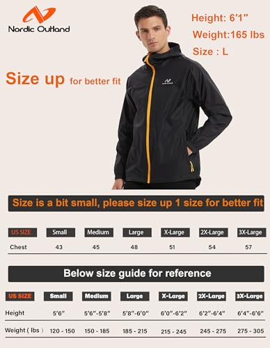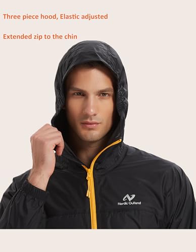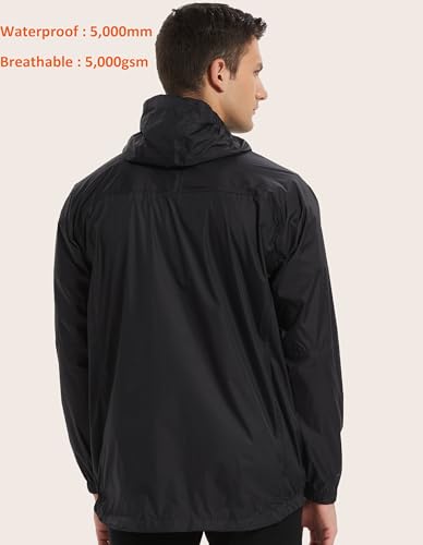 Rain Jacket Men Packable Lightweight, Waterproof Breathable Raincoat with Hood, Outdoor Hiking Winbreaker