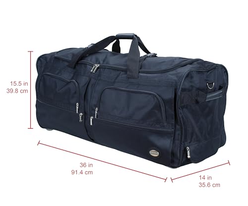 Travel in taste with this nice comfortable-sided rolling duffel bag. Bag includes a heavy duty polyester construction. Inline skate wheels for superior mobility, internal retractable hide-away maintain system, U-most sensible opening supplies simple get entry to to roomy zipper secured main compartment. Three front zipper-secured compartments, adjustable ergonomic shoulder strap. Made from 600 denier heavy duty polyester. Measures 40″L x 17″W x 16″H