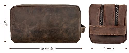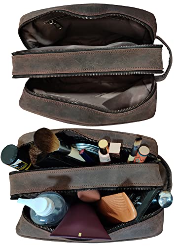 RUSTIC TOWN Full Grain Leather Travel Toiletry Bag – Cosmetic Ditty Kit Organizer (Dark Brown)