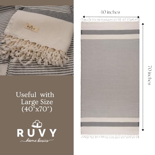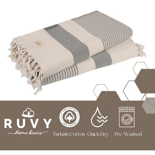 “Ruvy 2 Pack Turkish Beach Towels – 100% Cotton Oversized Quick-Dry Bath Towels Prepare for your next adventure or improve your home with the Ruvy 2 Pack Turkish Beach Towels, designed to meet your entire needs from camping essentials to bathroom decor. Each towel measures a generous 40 x 72 inches, making them the perfect choice for numerous uses, including beach outings, pool days, and more. Luxurius Quality: Crafted from 100% premium Turkish cotton, these oversized towels offer superior absorbency and quick drying. They are perfect for a range of settings including cruise ships, home gym, and boho inspired decor. Enjoy the softness and durability of our towels which make sure you stay comfortable whether you’re lounging by the pool or on a yoga mat. Stylish, Soft & Compact: Our quick-dry beach towels add a touch of elegance to any bathroom decor or go back and forth setup. Their chic design and ultra-soft texture make them ideal as go back and forth accessories or for use at the gym. Despite their large size, they are lightweight and easily packable, fitting neatly into your luggage or camping gear. Immensely Practical: Designed to be sand-free and easy to maintain, these towels are an essential addition to your clearance shopping list. They roll up compactly, making them a practical choice for go back and forth and versatile use. Perfect for the pool, yoga, or kitchen spills, these towels provide functionality and style wherever needed. Care Guide: For best results, machine wash these cotton towels before use and line dry. This simple care routine ensures that your towels remain soft and in excellent condition, ready to provide reliable performance for your entire needs. Discover the ultimate combination of style, comfort, and practicality with Ruvy’s Turkish Beach Towels. Whether you’re stocking up on bath towels, searching for the ideal mat clips for yoga, or seeking the perfect quick-dry solution, these towels are your go-to choice for all go back and forth accessories and home essentials.”