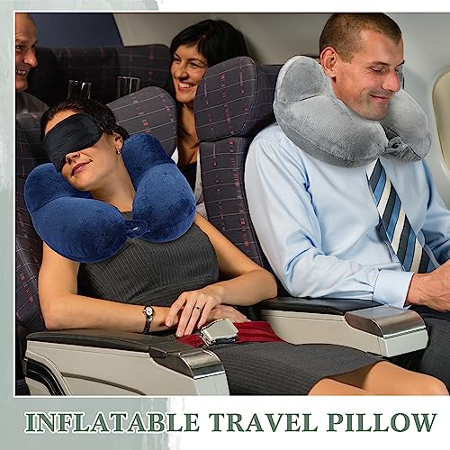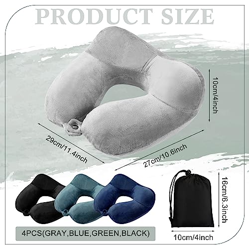 Sintuff 4 Sets Inflatable Travel Pillows for Airplanes with Compact Bag and Blindfold Velvet Inflatable Neck Pillow for Traveling Head Support U Shaped Flight, 12 x 12 x 5.5 Inch(Multi Color)