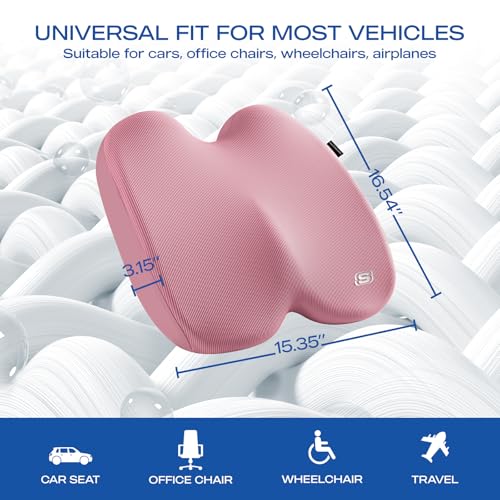 Skechers Seat Cushion, Ergonomic Memory Foam Cushion for Long Sitting Hours on Office & Home Chair, Car Seat Cushion for Sciatica, Coccyx Cushion,Pink