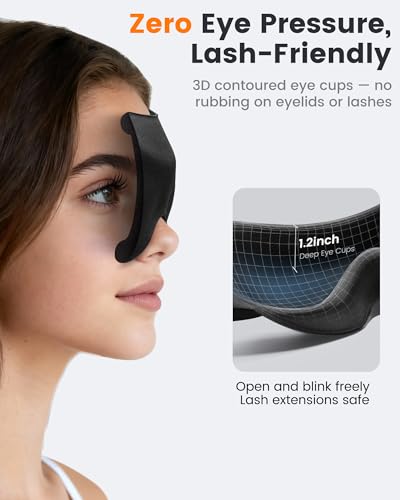 【No Pressure on Eyes – 3D Contoured Design for All-Night Comfort】The deep 3D contoured shape gives your eyes and lashes room to move, so there’s no pressure, no smudged makeup, and no “heavy” feeling on your eyelids. Perfect for sensitive eyes, lash extensions, and light sleepers who need a mask they are able to wear all night without discomfort.