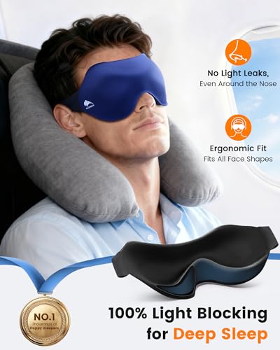【100% Blackout Even in Daylight – Better Sleep in Any Room】The curved hollow nose bridge and ergonomic 3D design block light from all directions, helping you go to sleep faster and sleep longer. Especially suitable for naps, morning light, shift work, or sharing a room with any individual who has lights or a TV on.