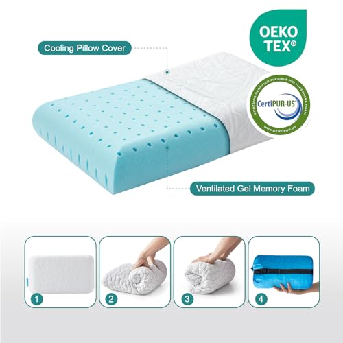 Small Gel Memory Foam Camping Pillow Travel – Contoured Support -Compressible Pillow Ideal for Backpacking, Camping, Travel, Car, Airplane,Office Nap