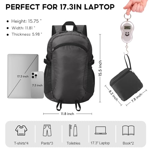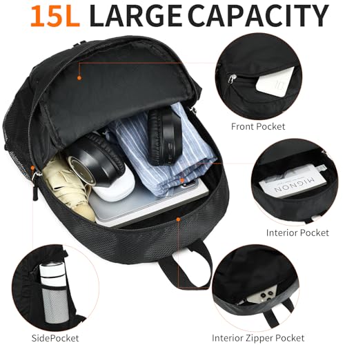 Small Hiking Backpack Travel Lightweight Hiking Packable Daypack Water-Resistant Foldable Backpacks 15L for Travel Women Men Camping (Black)