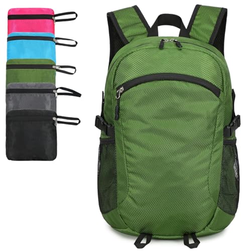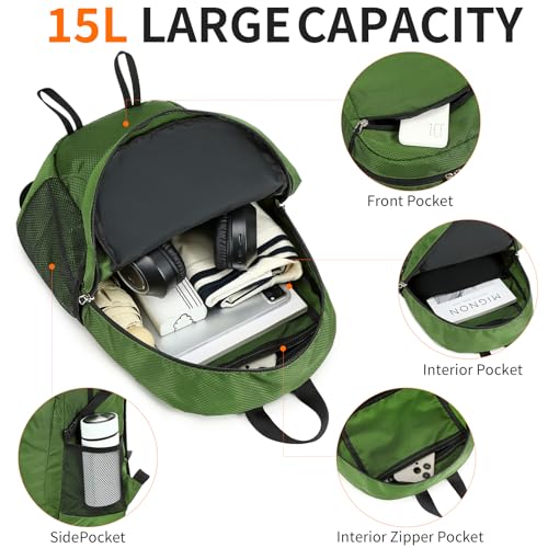 Small Hiking Daypack,15L Waterproof Hiking Backpack Packable Lightweight Travel Day Pack for Women Men (Green)
