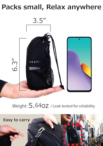ULTRA-COMPACT AIRPLANE BACK PILLOW FOR TRAVEL: Weighing just 5.64 oz, it deflates to 3.5″ × 6.3″ and packs easily into carry-ons or backpacks. Best comfort at 60–70% air (approx. 13.8″ × 7.9″ × 3.7″)—perfect for long flights and on-the-go toughen.