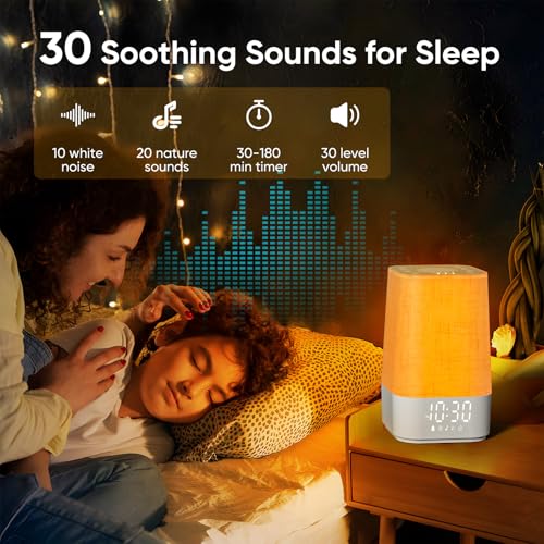 Sound Machine White Noise Machine with 30 Soothing Sounds, Sleep Timer, Dimmable Bedside Lamp Night Light Clock, Sunrise Alarm Clock Wake Up Light for Bedrooms, Baby, Kids, Adults, Heavy Sleepers