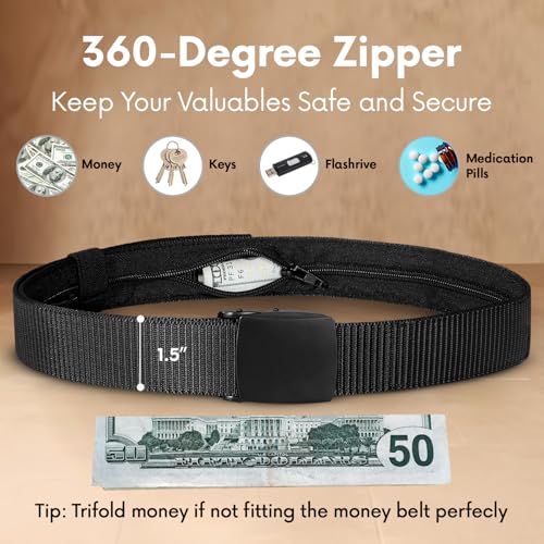 SP HOME GOODS Travel Money Belt with Hidden Money Pocket, Nylon Military Tactical Mens with Zinc Alloy Buckle- Black