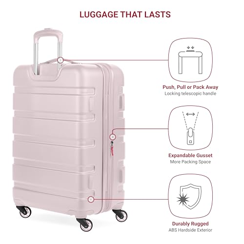 SwissGear 7366 Hardside Expandable Luggage with Spinner Wheels, Pink, Checked-Medium 23-Inch