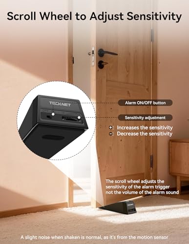 Infinitely adjustable sensitivity: This door blocker uses a roller to adjust the sensitivity to replaces the traditional three-level adjustment. This design lets you fine-tune the siren’s trigger point to accommodate a much broader range of scenarios. Make a selection high sensitivity for maximum safety, or low sensitivity to prevent false alarms caused by vibration or accidental collisions, ensuring peace of mind.