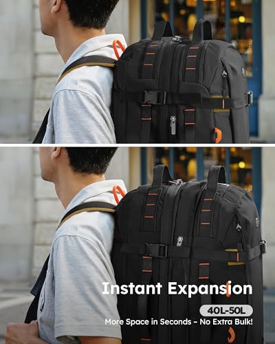 【Expandable 40L-50L for Any Journey】Expand the 40L travel backpack to 50L with dual-compartment main storage, this travel laptop backpack adapts to your needs from daily commutes to 5-day getaways. Large separate dry-wet compartments keep gym gear, toiletries, or damp clothes neatly organized. Whether you’re packing light or loading up, this versatile travel bag ensures everything stays in place, making it your ideal travel companion