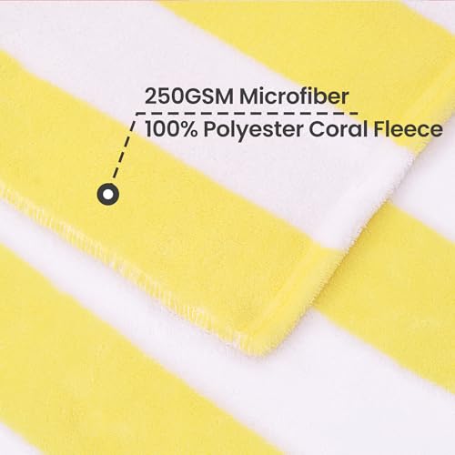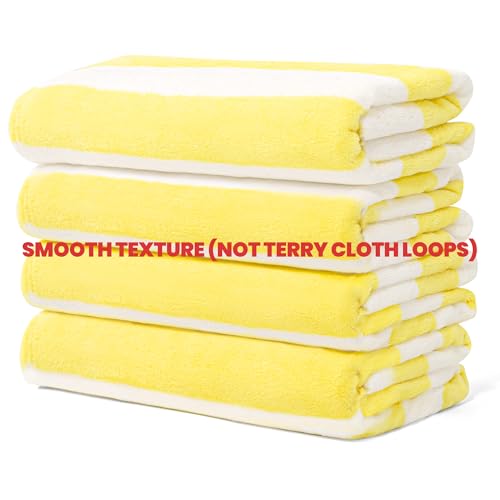 Touchat 4 Pack Cabana Stripe 250GSM Polyester Lightweight Quick-Dry Beach Towel & Blanket Combo- 30” x 60” Compact Travel Towel for Pool, Camping, Gym, Yoga | Ultra-Portable, Multi-Functional,Yellow