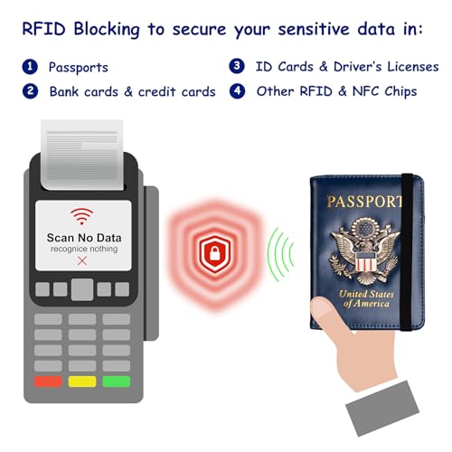 RFID Security: The leather passport holder rfid blocking has a special material to block RFID signals so that the passport organizer can protect your personal information in your passport and credit cards from unauthorized scans. RFID blocking shielding material of the passport holder men women is used to prevent thieves from swiping your credit card to steal your personal information in airports or crowded places.