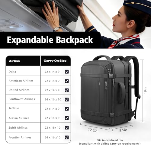 Travel Backpack,40-50L Expandable Carry On Backpack with USB Cable Port Fits 17.3 Inch Laptop Bag,Water Resistant Weekender Bag Men Women for Business Trips, College,Hiking,Daily Commuting,Black
