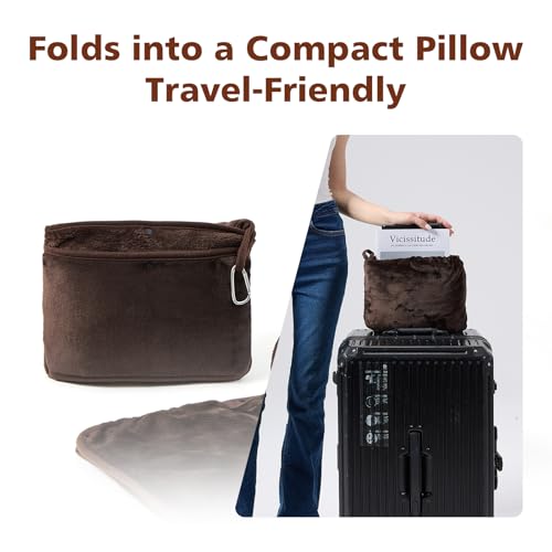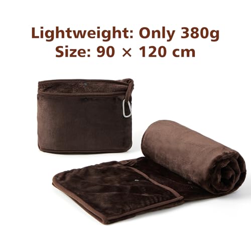 Travel Blanket with Carry Bag, Lightweight Wearable Airplane Blanket, Soft Packable Throw for Travel & Office