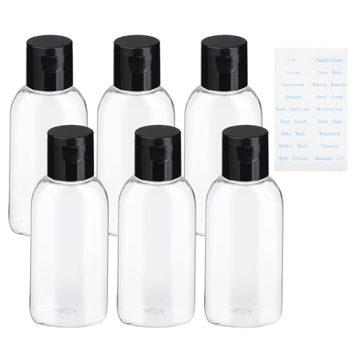 Travel Bottles for Toiletries BPA-Free Empty Squeeze Containers,6 Pack 1.69 oz Refillable Squeeze Bottle, Leak Proof Small Plastic Shampoo Containers with Labels